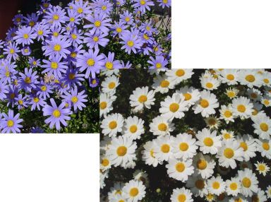 ブルーデージー/スノーポール : 花言葉「協力」